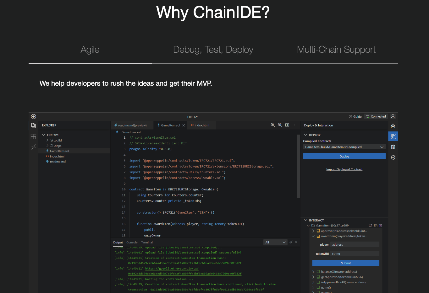 ChainIDE 是一个强大的智能合约开发 IDE,为初学者提供了便利和适用性。 它是在 Core Space 测试网上开发和部署智能合约的绝佳工具。
