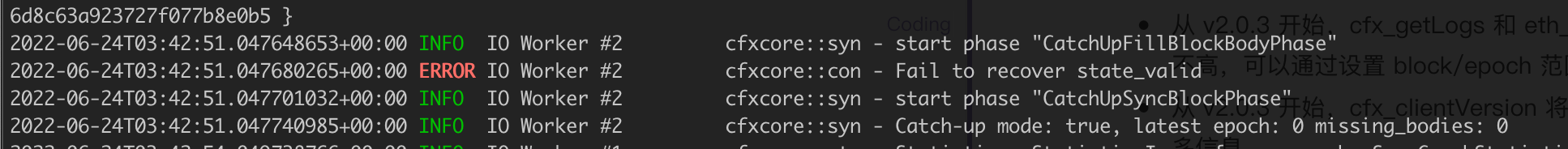 ERROR IO Worker #2 cfxcore::con - Fail to recover state_valid